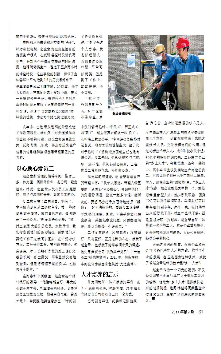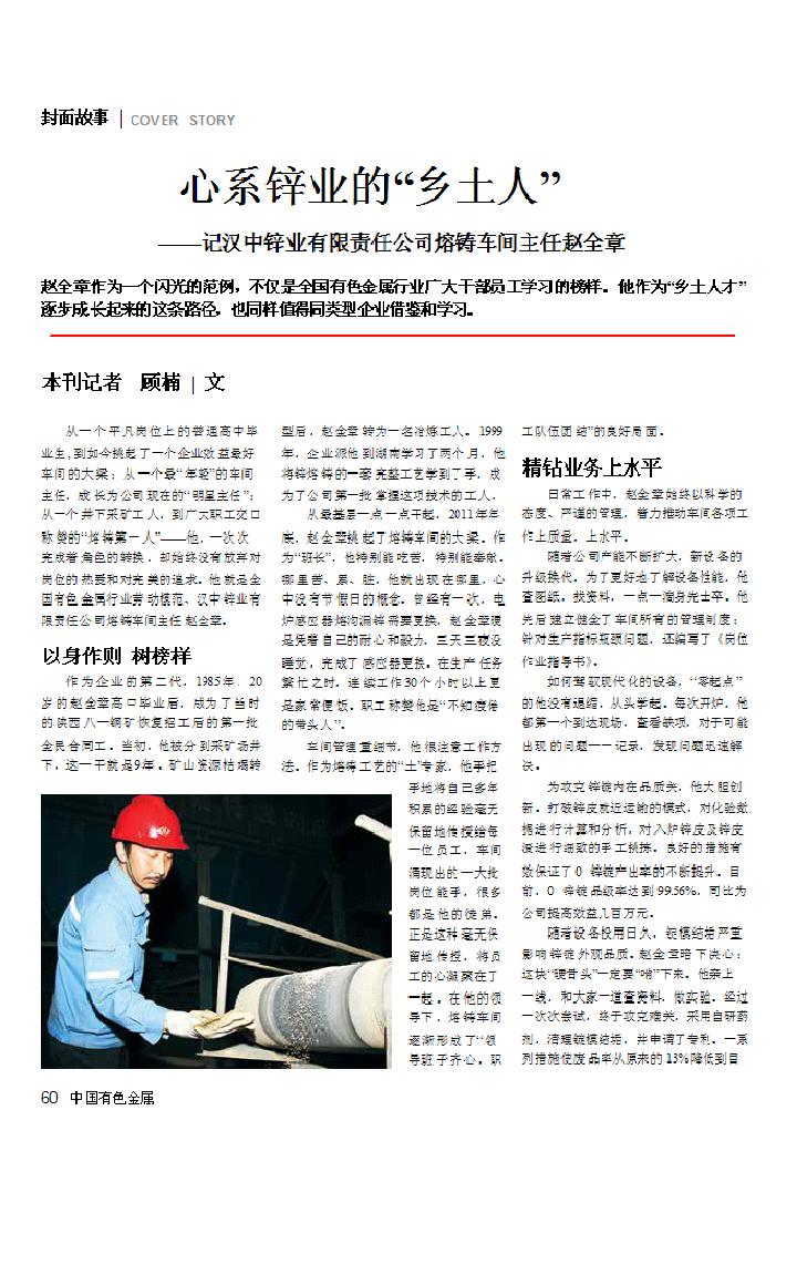心系鋅業(yè)的 “鄉(xiāng)土人”——記漢中鋅業(yè)有限責(zé)任公司熔鑄車間主任趙全章