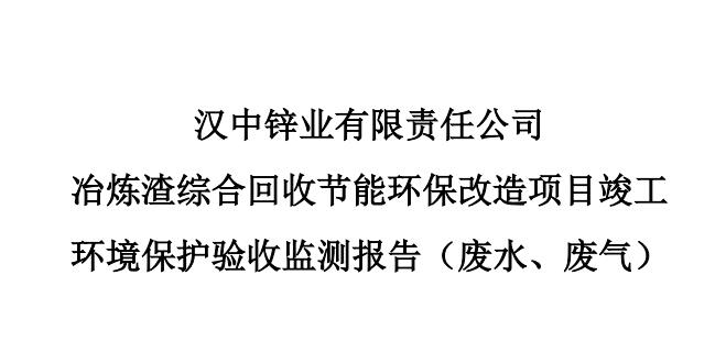 漢中鋅業(yè)有限責任公司冶煉渣綜合回收節(jié)能環(huán)保改造項目竣工環(huán)境保護驗收監(jiān)測報告(廢水、廢氣)