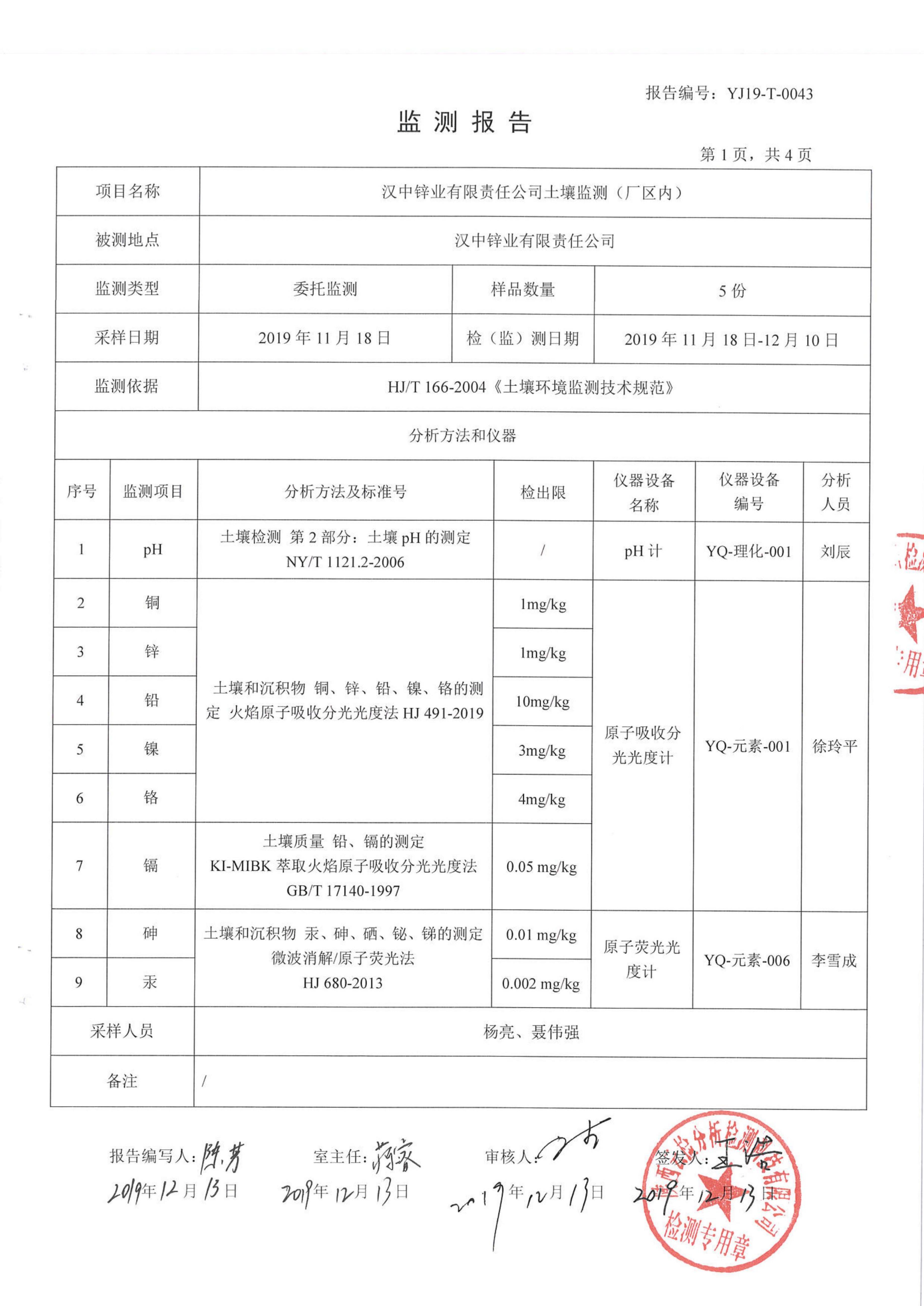 漢中鋅業有限責任公司2019年度土壤自行監測公示