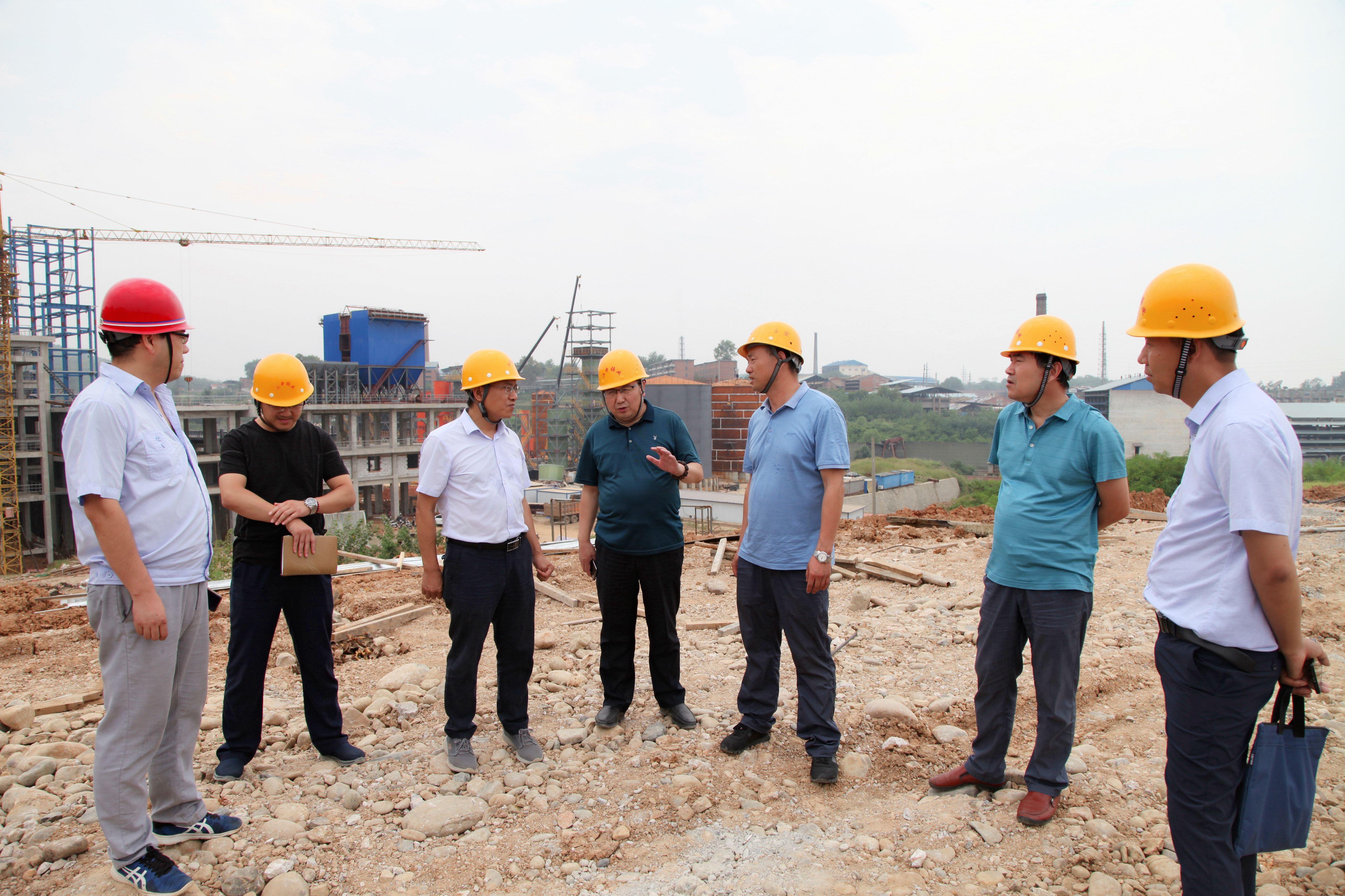 烈日當頭,在公司總經理王正民、副總經理王瑜,副總工程師張焰,機動能源部負責人蔣春華等陪同下,劉俊華一行參觀了公司渣處理項目現場。然后順著山路爬上高坡,實地察看渣處理項目供電架空高壓線路走向、鐵塔位置以及35kv變電站施工進展情況。