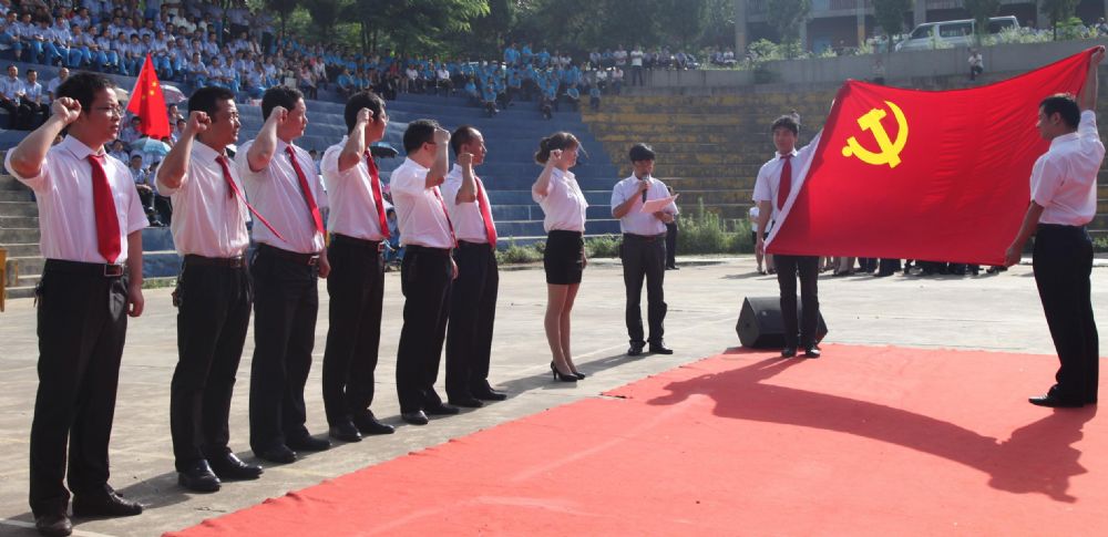 合唱比賽開始前,公司黨委舉行了新黨員宣誓儀式,黨委組織部長楊新宏領誓。在鮮紅的黨旗下,7名新發展黨員高舉右拳,以拳拳之心莊嚴宣誓,在鮮紅的黨旗下許下為共產主義事業奮斗終身的承諾。
