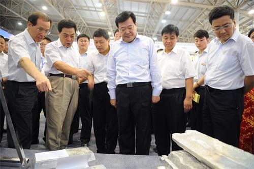 副省長李金柱在集團公司副董事長馬寶平、副總經理魏俊英等領導陪同下,到公司產品展臺前,饒有興趣參觀了公司產品展示。